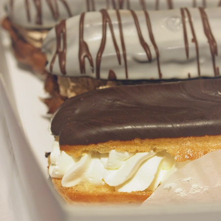 なんて話しながら、なにか御褒美を買って帰ろうと、イタリアン・ベーカリーによってエクレアを買って帰った。