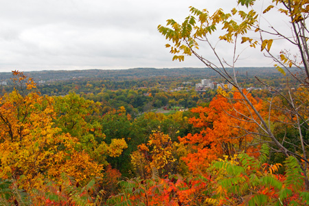 小高い山の上の縁に続くトレイルなので、下の町を一望できる。