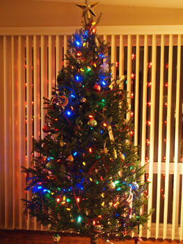 家に帰ってきてから、玄関先にクリスマスライトをつける。