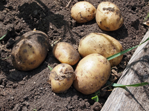 けれど、バラはまた新しい蕾を着けていて、ジャガイモとシュガースナップ・ピーを収穫。