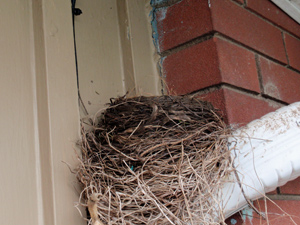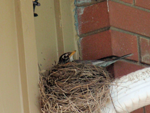 数日前、バックヤードを見ていると、ロビンがデッキの近くを行ったり来たりしている。