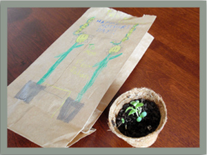 ペチュニアのハンギングバスケットとチョコレートを持って。