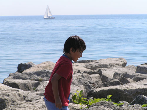午前中、近くの湖岸の大きな公園へ行き、Julianをウォーターパークで思いっきり遊ばせる。