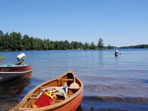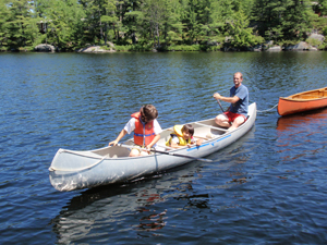 Tと子供達がカヌーに乗って、向い側のコテージのカヌーを借りに行ってくれた。