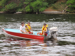 次の日、2軒隣のコテージの子が、J.C.とサイモンをボートに乗せてくれた。
