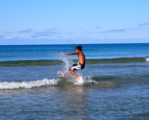 最後の日の午前中は波があったから、3人で波と戯れ、時にはのまれてたっぷり遊んできた。
