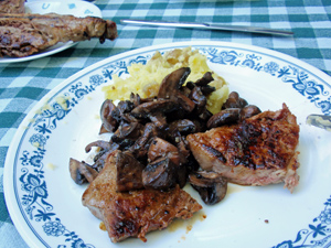 付け合わせのマッシュポテトとマッシュルームの炒め物と一緒に、久しぶりのステーキを堪能。