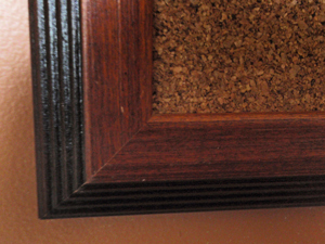 それを取り除き、フレームの後ろ側にぴったりはまる薄いボードを用意し、ボードにコルクシートを張り付け、それをはめ込む。