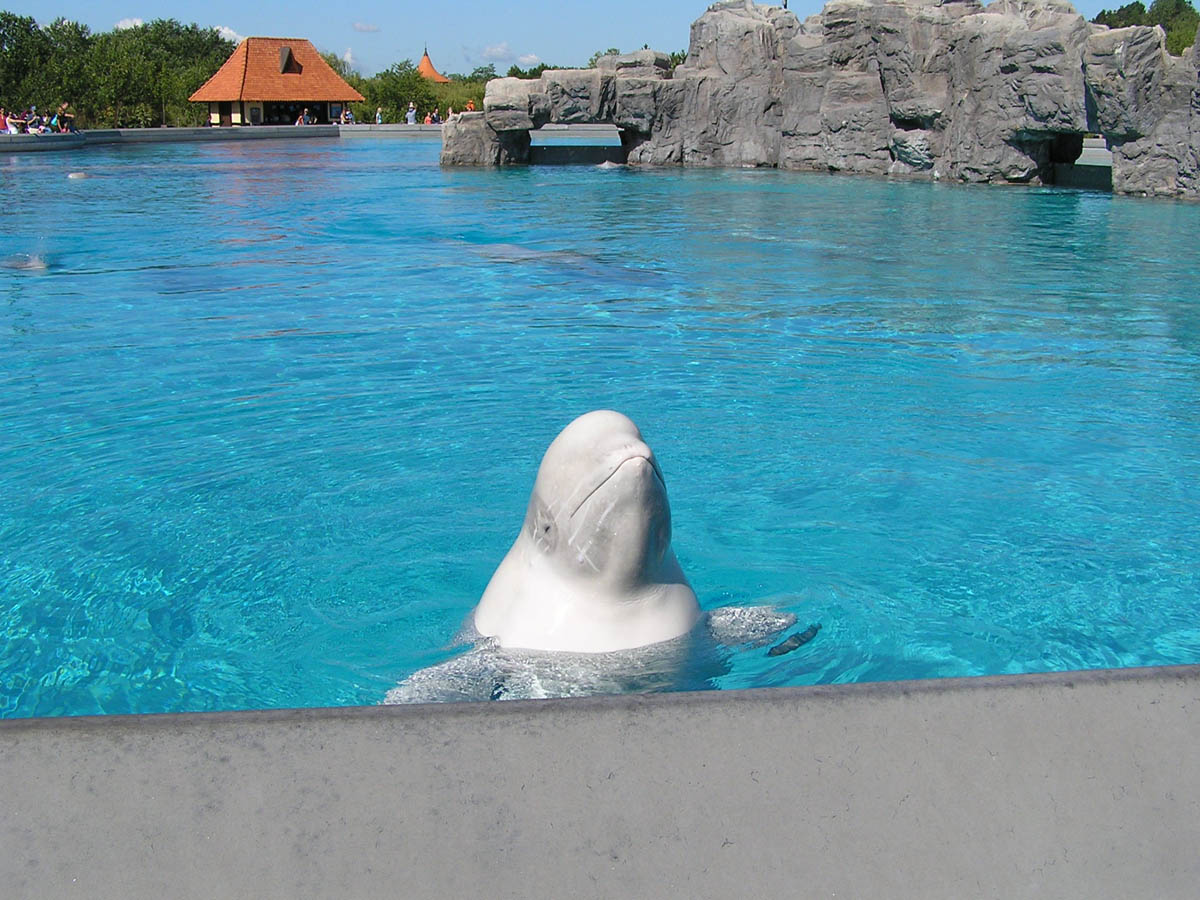 ベルーガのショウは見なかったが、プールの外から見ていると寄って来て、顔を出しお喋りをする(様に声を出す)。