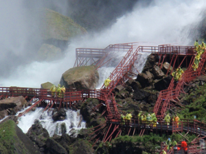 アメリカ滝では、こんな風に滝に打たれることができます(笑)