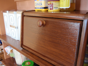 よく行くスリフトストア(リサイクルストア。でも日本とは違い、商品は市民からの寄付、そして売り上げも寄付)で、木製の古いブレッドケースを見つけた。