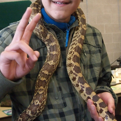 「2階に行くともっと蛇がいて、蛇に触れるよー」
