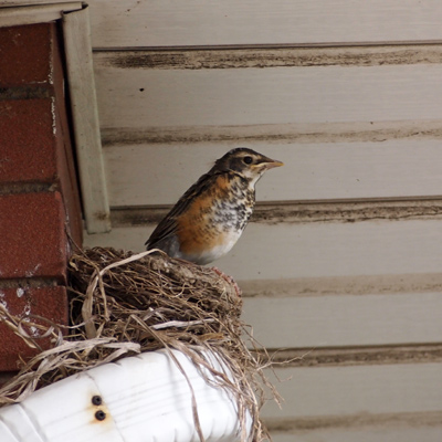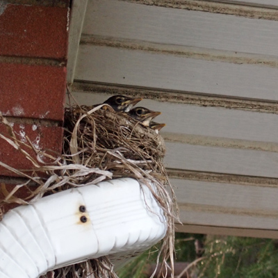 ロビンのヒナはすくすく育ち、月曜日の朝巣を見てみると、なんだか急に大きくなったみたい。