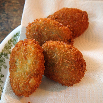 パン粉を買ってきて(今やパン粉はPankoとして、どこでも買える)ジャガイモを茹で、楽しみながら作った。