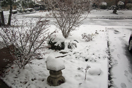 まだそんなに寒くないから重たい雪で、たいして量は積もらなかったけれども、1日中降っていた。