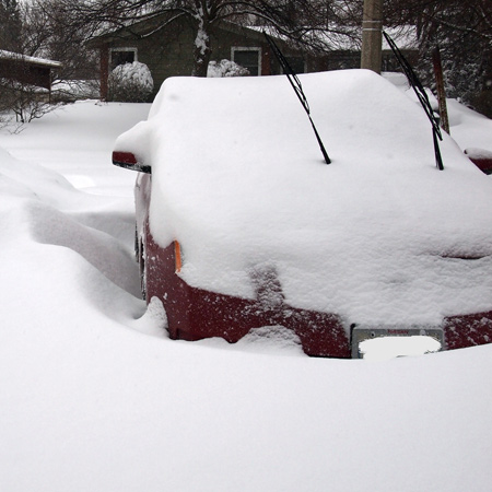 車の雪を下ろし、ドライブウェイを除雪し、それから家の周りをぐるっと。
