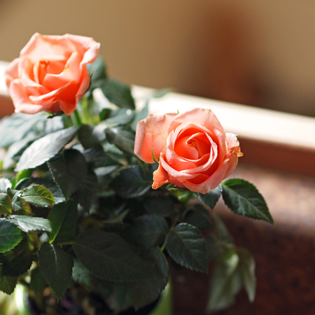 義姉から貰ったミニバラ キッチンでなごむ~♪