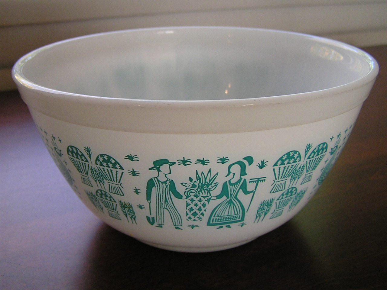 まず使い勝手が良くて、ミキシングボウルのくせに柄がついてて、電子レンジもOKだし、調べてみたら日本ではコレクターがたくさん居て結構なお値段で売られているもの。