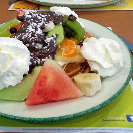 悩んだ挙句、私が頼んだのはワッフル&フルーツてんこ盛り(そうは書いてなかったけど)。