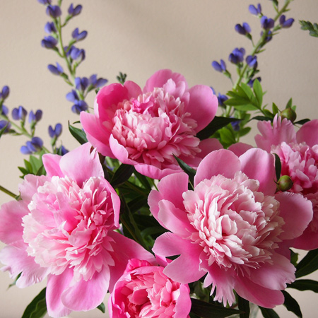 先週から咲き始めたピオニーを、インディゴと合わせて活けてみた。