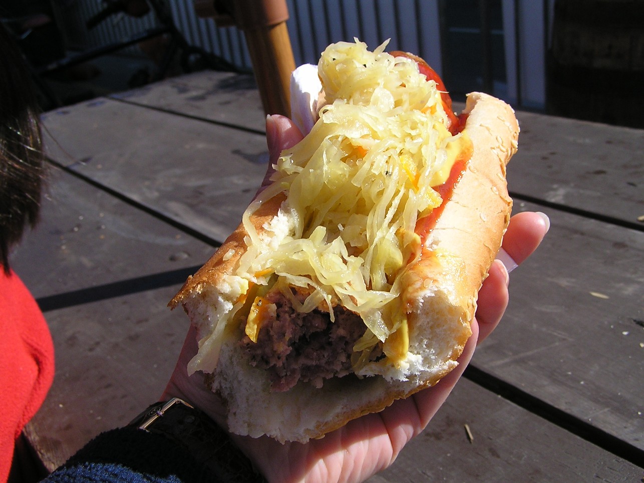 たっぷりのサワークラウトがまた合うんだ、これが。
