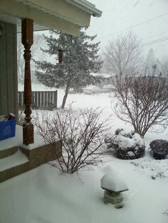 幸い、雪はさらさら細かく軽く、降ってる割には積もってもかさがなくて助かってるのだけど、寒い!今朝の気温-11℃。