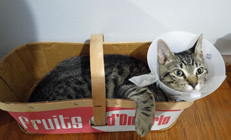 首にコーンをつけられてお帰り(患部を舐めたりしないように)。