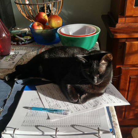 私の料理中でもキッチンの床に寝転んだり足に絡みついてきたり、とっても邪魔で危ない時があるし、ダイニングテーブルの上に乗ってきて「だめよ」と言って下ろしても、またすぐに乗ってくる時がある。