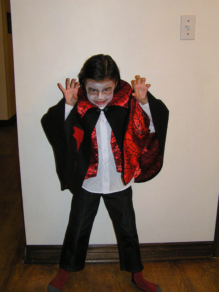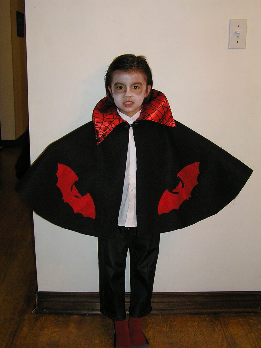 今年はヴァンパイヤになりたいというJulianの希望から、ヴァンパイヤ用のケープを作った。