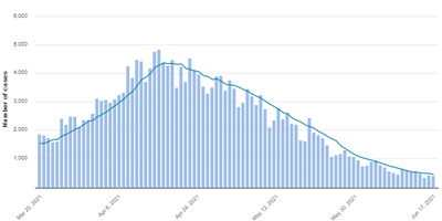 私が住んでいる市は、今日の新規感染者数は10人以下。