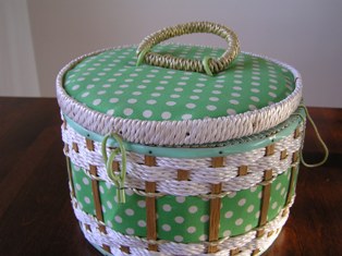 ヴィンテージのソーイングバスケット。