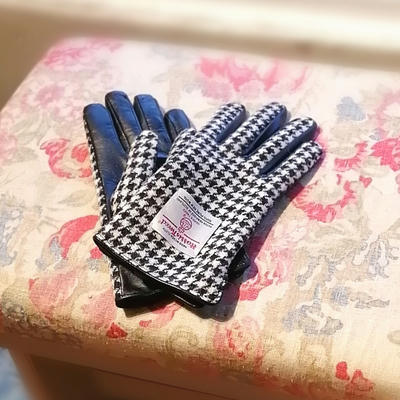 甲の部分がハリスツイード、手のひら部分がラムスキン。