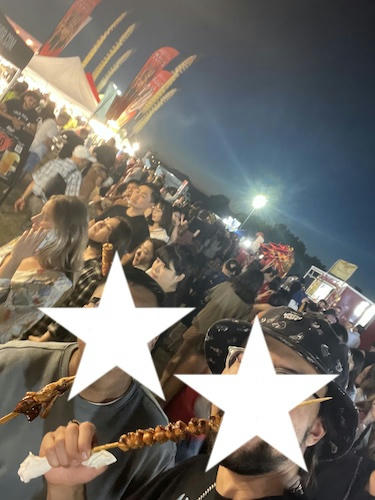 J.C.は前にも行ったことがあるのだけど、たこ焼きがあったり(小さなタコが丸々乗っかってる)、イカ焼きがあったり(ながーい串に刺されてる)、日本のお祭りみたいな感じらしい。