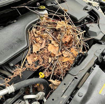 次の日、車のボンネットを開けてみると、驚きの光景。