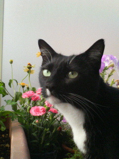 Angieもベランダが大好きで、私が出ようとするとどこからともなく走ってきて、一緒に出る。