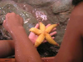 ヒトデに触れるコーナーがあって、子供達みんな、ヒトデを一つ一つ触っていた。