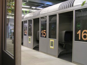 ここではいろんなビデオがブースで見られる様になっている(写真)。