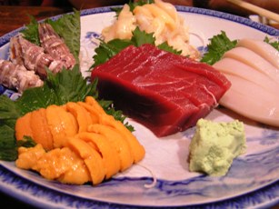 いつもの様にお刺身の盛り合わせを頼むと、なんだか今日は変わった盛り合わせ。