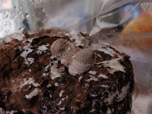 これは原木ではなくて、何でできているのかはわからないのだけど、椎茸の菌糸が入っているもの。