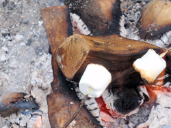 持ってきたマシュマロを取りだし、棒にさして焼いた。