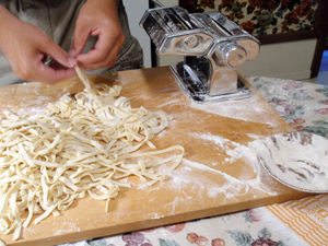 と、くりくりハンドルを回し、タリアテッレが出来上がった。