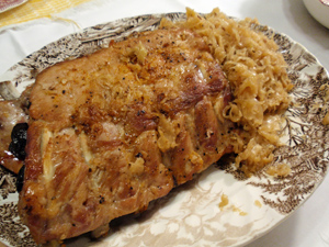 メニューは、リブローストプルーン添え、サワークラウト、マッシュポテト、サラダ。