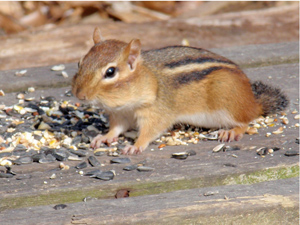 リスやチップマンクもやってくる。