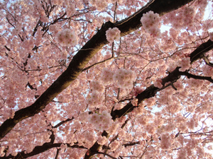 こんな大きな大きな桜の木がありまして・・・ 見上げれば、桜がほろほろと降って着そうな程たくさん・・・ ほらね、たくさん! ピンクの花びらが愛らしい♪
