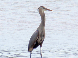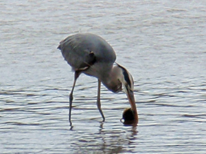 トレイルからクーツ・パラダイスを望むと、ブルーへロンが魚を捕まえ、食事中。