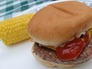 夜ご飯はハンバーガーとコーン。
