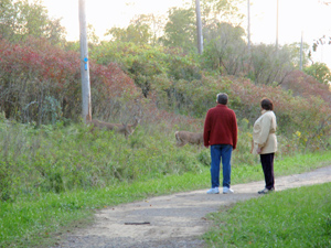 この日も、私達を追い越して行った人達が先の方で立ち止まっていたので、ゆっくり近づいて見ると、ちょうどブッシュから鹿が出てきた所だった。
