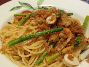 シシリア風にアンチョビを入れたシーフードのパスタ。