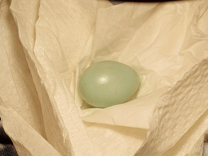 J.C.が手に取り、ぽちっとシミの様な箇所を汚れと勘違いして、擦って落とそうとした時に割れてしまったらしい。
