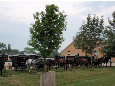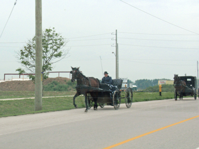 途中、メノナイトが多く住む町を通り抜けたら、ちょうどみんなが日曜の礼拝の為、教会に集まってくる所だった。